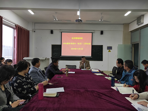 会议上,于院长首先阐述了本科毕业设计(论文)工作的重要性,他指出,毕业设计(论文)是对学生综合素质的继续培养,也是对学生全面能力的检验,搞好毕业设计(论文)工作对全面提高教育教学质量意义重大。2020届本科毕业设计(论文)工作是我院首次的大型综合性实践教学环节,全体教师要以高度负责任的态度来做好2020届本科毕业设计(论文)工作,它事关教学质量生命线,事关教师的责任心、事关学生个人发展。他要求,一是指导教师要管起来、严起来,指导学生深入社会和企业,要理论联系实际,真题真做,一人一题;二是实行指导教师负责制,师生承诺制和论文查重制度,坚决制止学术不端行为产生;三是师生要明确毕业设计(论文)各阶段任务和完成的时间节点,完成好专家审题,文献检索与翻译、开题报告、中期检查、论文答辩等过程性管理和资料的保存,保质保量完成2020届本科毕业设计(论文)工作。