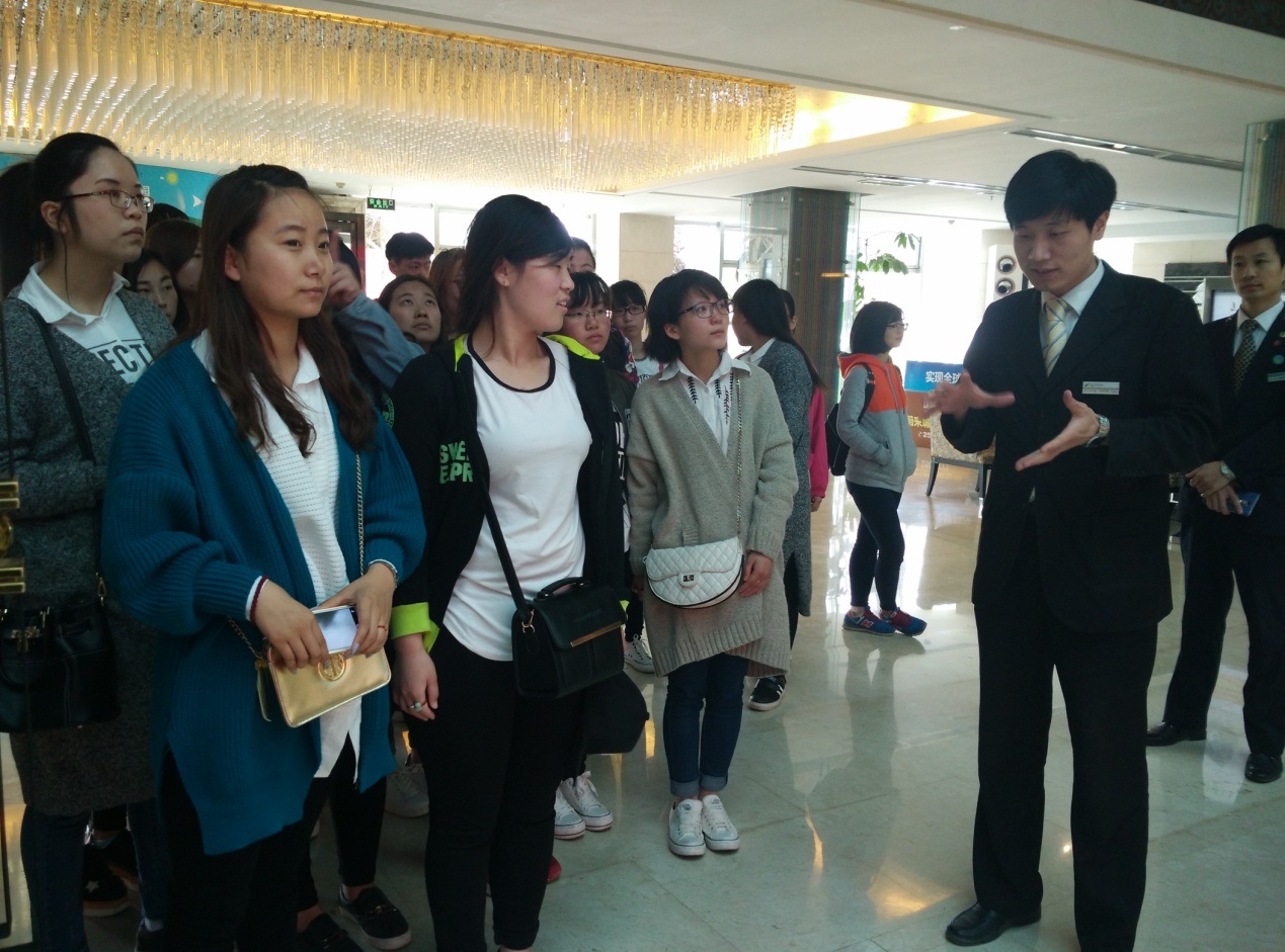 2016年3月29日上午,经济管理系14高职连锁班的学生在刘艾香老师的带领下步行至酒店。刘老师在路上给同学们讲解了酒店的大致格局,使学生对该酒店的文化有了一定的了解。