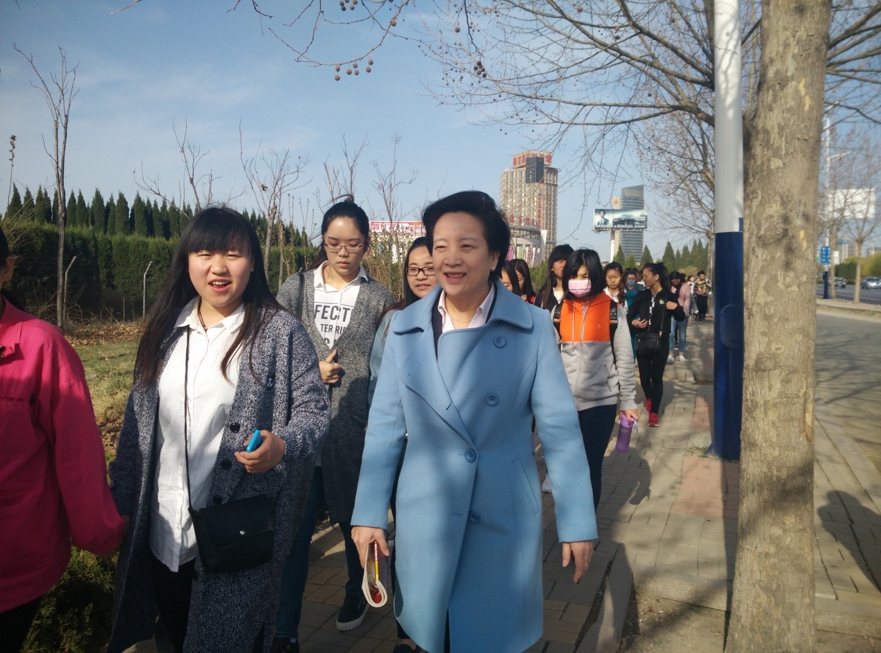 刘艾香老师和同学们一起步行到酒店