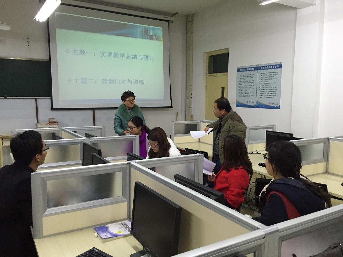 市场营销专业围绕即将开展的《推销技术实训》、《商务礼仪段式开课》等课程组织专题研讨,教研室主任白林重点阐述和说明了市场营销专业开展实训教学的必要性、实训环节的内容编排、实训过程中的纪律要求、实训技能演练和实训考核等问题。
