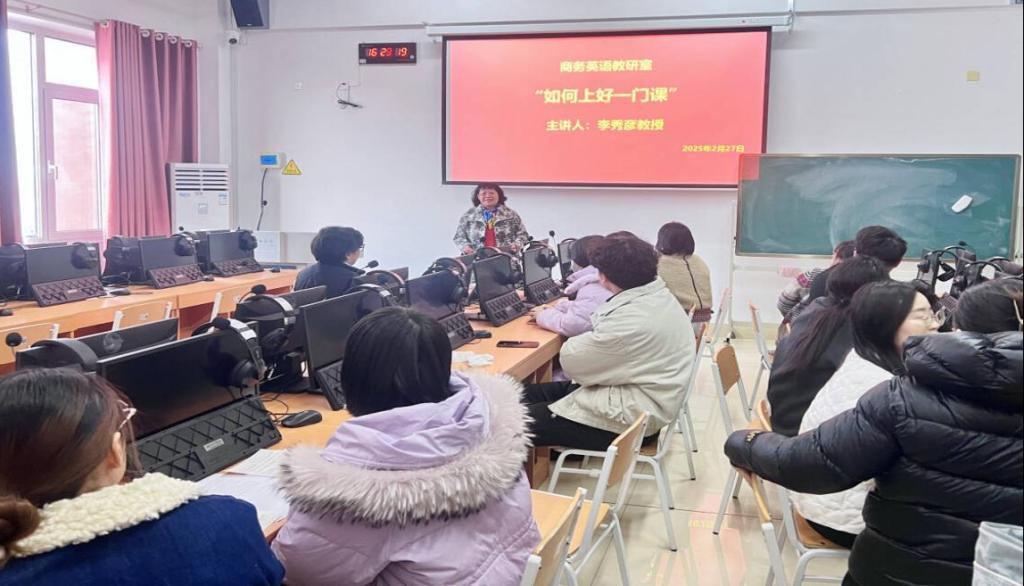 为进一步优化教学管理,提升课程教学质量,yl7703永利集团商务英语教研室于2025年2月27日邀请李秀彦教授,在20#708举办了“如何上好一门课”教研活动。本次活动聚焦于学校评价课程的重要指标,深度剖析了课程思政、教学态度及教学效果等多个关键领域,旨在我教研室教师提供深入的指导,促进教学质量与水平的全面提升。