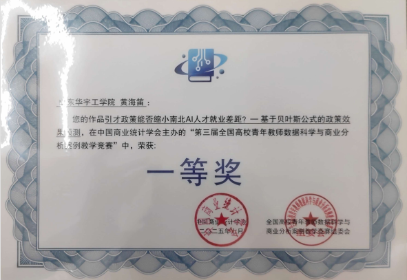 我院教师黄海笛在全国高校青年教师数据科学与商业分析案例教学竞赛中喜获一等奖