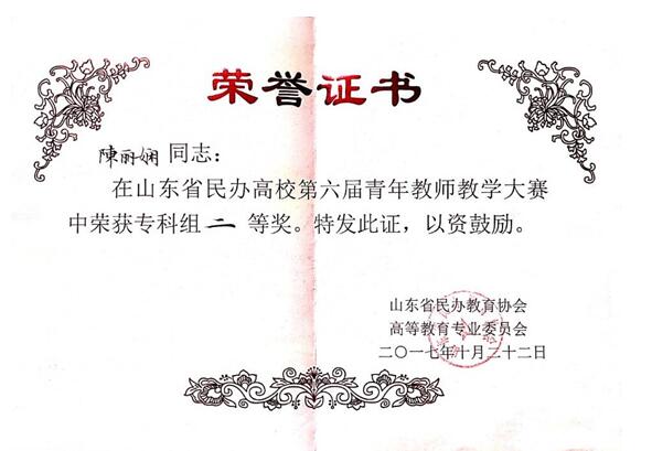 我院教师陈丽娴在2017年山东省民办高校第六届教师教学比赛中荣获二等奖