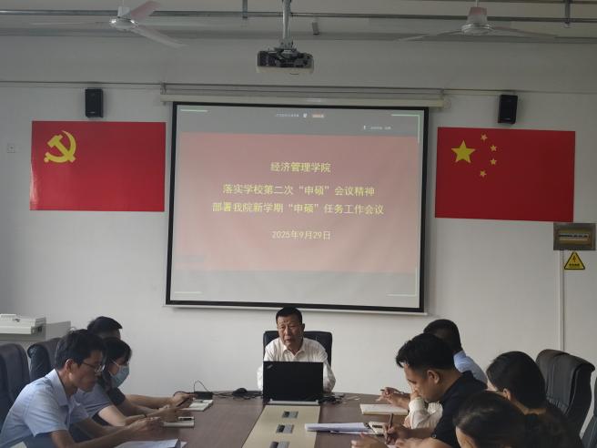 会议要求,要把申硕工作作为学院当前及今后一段时期的重大核心任务,精心组织师资培育、科研攻关、教学成果凝练等专项工作,分层分类开展申硕政策解读与业务培训,切实把学习成果转化为推动申硕工作的具体举措,凝聚全院智慧与力量,攻坚克难、突破难点,为学校成功获批硕士学位授予单位贡献经管力量。(撰稿:学院综合科;摄影:陈亭禹)。