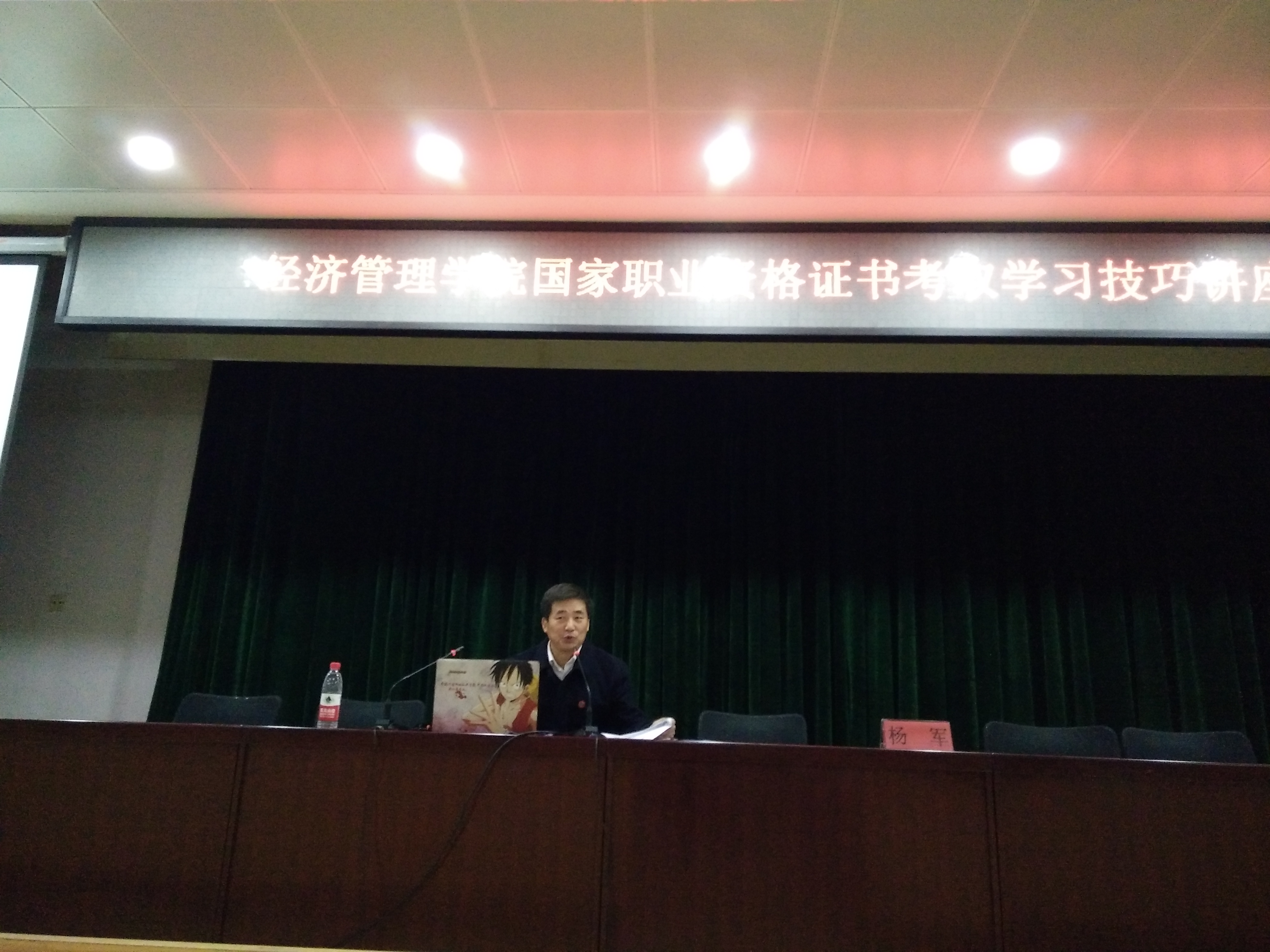 为了帮助我院学子更好的了解考证相关知识为其就业赢得一块“敲门砖”,我院邀请杨军教授在14号楼101为经管学院16级本科全体学生举行了考证的相关讲座。