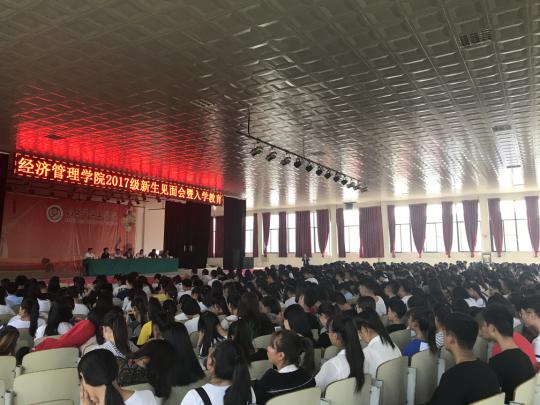 首先,于维同院长对2017级新生的到来表示诚挚的欢迎,并向新生提出了三点希望,希望2017级新生在未来大学生活中,拥有梦想、学习成才、学会生活。随后,2017级本科信息管理与信息系统臧小龙同学作为新生代表进行了发言。最后,院长助理戴明老师做了新生入学教育。戴老师从经管学院的发展历程、使命、愿景、价值观、机构设置、人才队伍、人才培养等方面进行了细致介绍,使新生对经管学院有了全面的了解,增强了经管学院新生成长成才的信心。