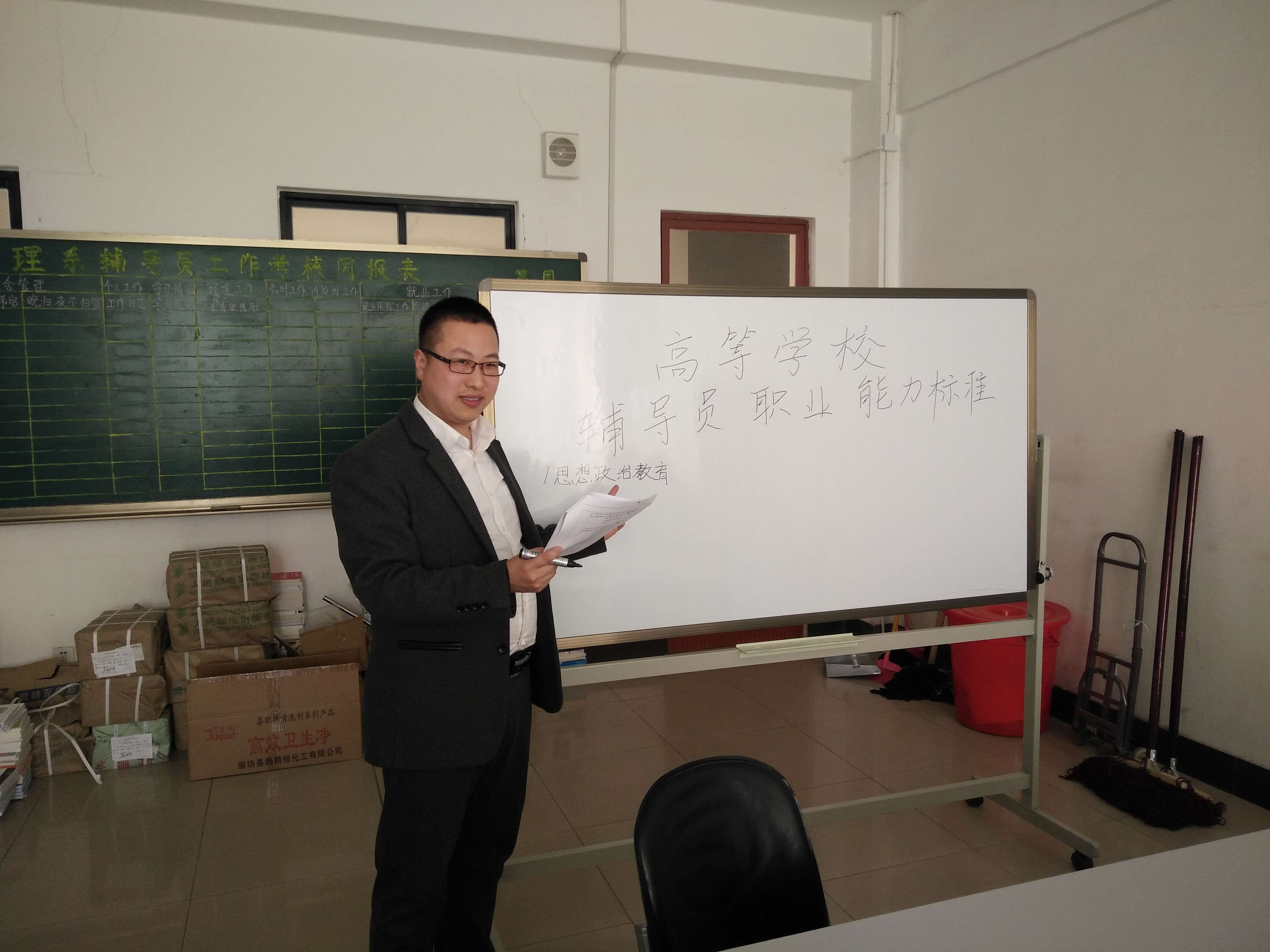 为进一步贯彻落实学生处工作要求,加强辅导员队伍建设,促进辅导员队伍专业化、职业化发展,提高辅导员的综合管理水平。3月21日下午,经济管理系组织本部门全体学管人员,在10号楼419开展集中学习活动—“学习高等学校辅导员职业能力标准(暂行)”,主讲人经管系主任助理范世伟。