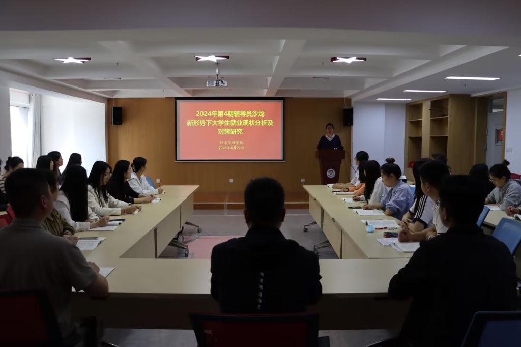 本次沙龙活动由范秀老师主讲,范老师结合工作实际,从大学生就业工作的重要性、大学生就业的基本现状、大学生就业的主要问题、大学生就业难的成因分析、大学生就业工作提升对策5个方面进行了交流汇报。汇报结束后,律静等4位毕业班级辅导员结合工作实际,对就业工作中遇到的问题及解决措施进行了交流。