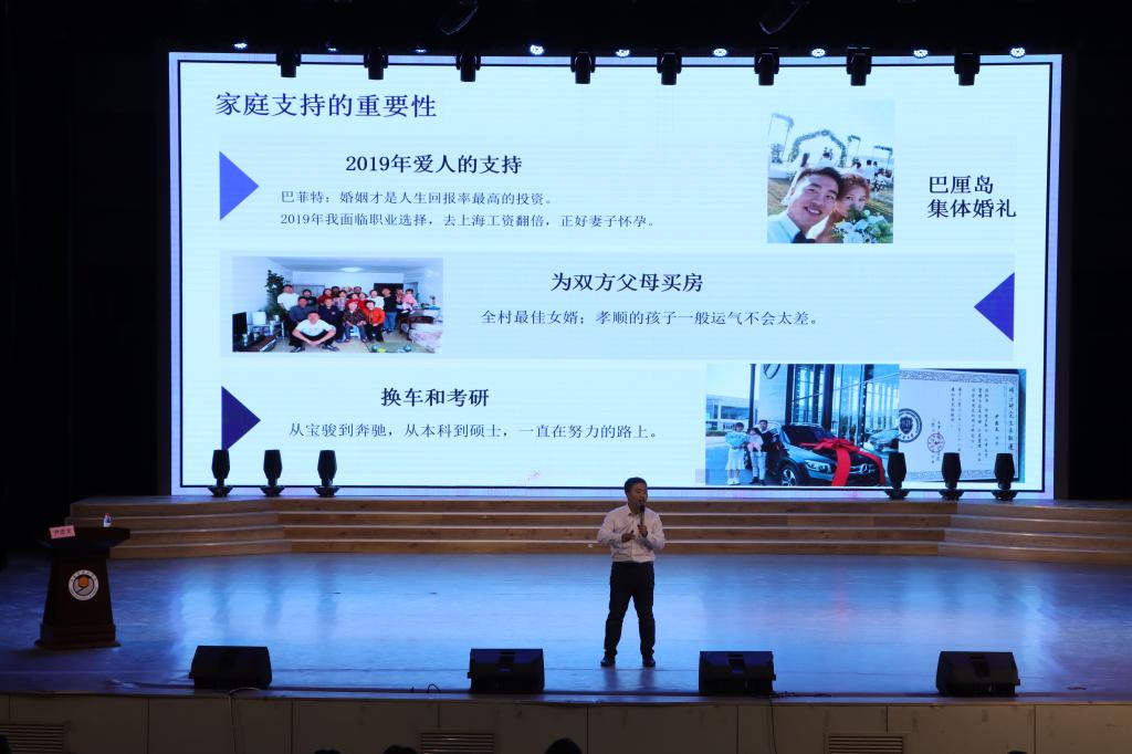 大会伊始,院长于维同代表学院向全体2025级新生表示热烈欢迎,并围绕学院发展历程、学科专业特色和人才培养目标等方面作了系统介绍。他勉励新生树立远大志向,珍惜大学时光,夯实专业基础,积极投身实践,全面提升综合素养,在大学阶段实现个人成长与飞跃。随后,教师代表牟晓雨老师结合自身教学经验,分享了大学阶段的有效学习方法与成长心得,鼓励同学们主动适应大学节奏,勇于探索、敢于创新,在专业学习与社会实践中不断进步。本科数字2502班杜鹃同学作为新生代表发言。她畅谈了对大学生活的期待与憧憬,并代表全体新生郑重承诺,将以饱满的热情投入学习与生活,严于律己、奋发向上,努力成长为一名出色的经管学子。最后,山东圆通速递有限公司总监尹忠文为新生带来《职业生涯规划》专题报告。他结合物流行业发展趋势与企业用人需求,通过丰富案例深入浅出地讲解了如何科学进行职业规划,引导同学们提前谋划未来,筑牢职业发展根基。