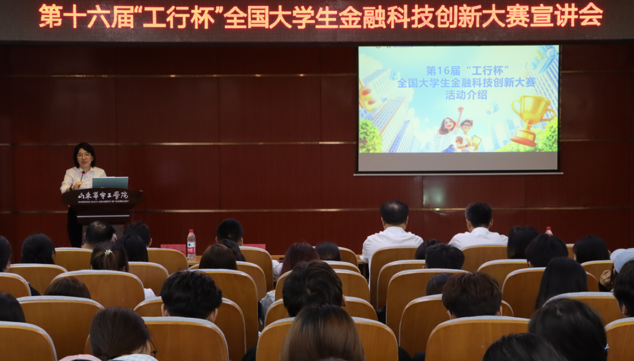 工商银行山东省分行金融科技部创新管理科科长杨茜女士为在场师生作了第十六届“工行杯”大赛的专题宣讲。她围绕大赛赛制、赛题方向、评审标准、报名流程等关键内容进行了系统解读,并结合实际案例分析了金融科技创新的趋势与机遇。杨科长的讲解深入浅出、内容充实,为同学们备赛指明了方向,激发了大家的参与热情。