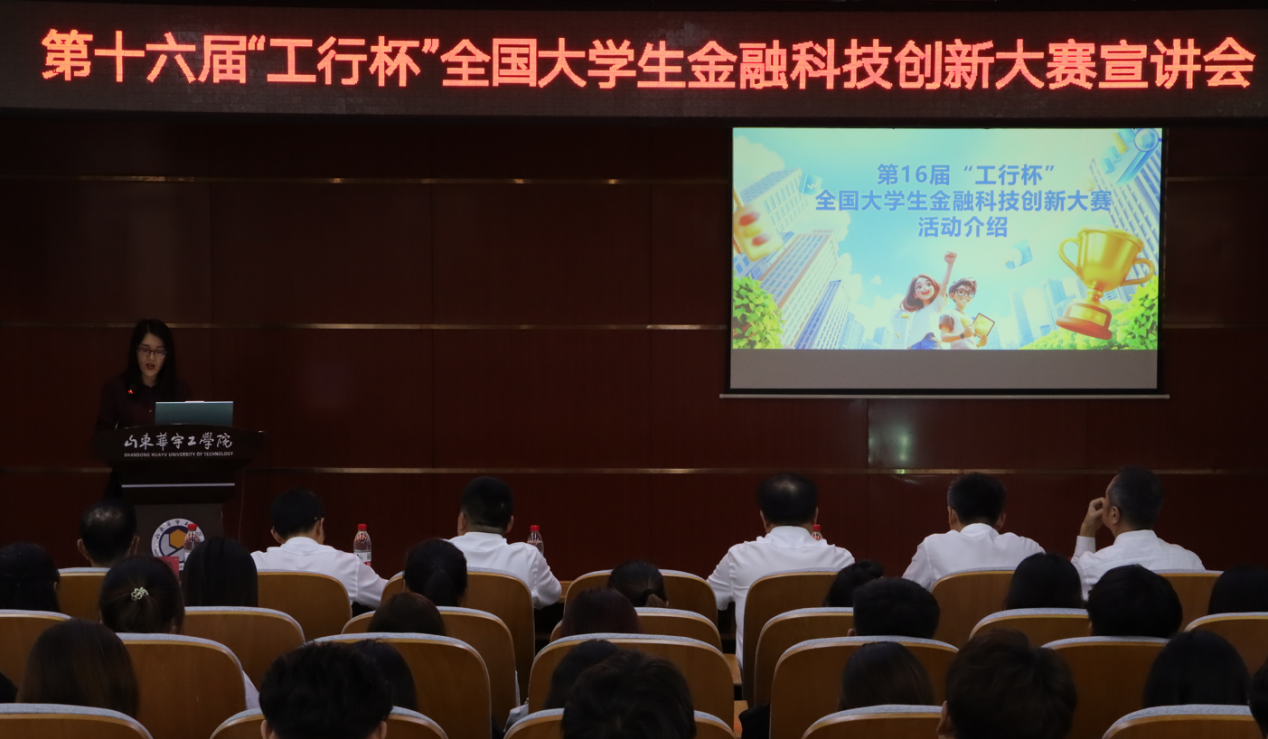 金秋送爽,硕果盈枝。2025年9月25日下午,我院成功举办第十六届“工行杯”全国大学生金融科技创新大赛yl7703永利集团校园宣讲会。中国工商银行山东省分行金融科技部总经理助理孙光福、创新管理科科长杨茜,德州分行副行长武海涛、金融科技部总经理盛荣春、副总经理郭超、经理孙传智等一行领导莅临我校,对我院学科竞赛的开展进行了专业指导。我院院长于维同、院长助理李娟、团总支书记王群、专业教师代表以及对金融科技充满热情的近两百名学生出席了此次会议,会议由房地产开发与管理教研室主任管程程主持。