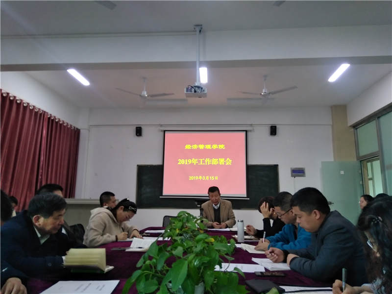 2019年是深入贯彻落实全国教育大会精神的开局之年, 也是实现我校 《“十三五” 教育事业发展规划》的关键之年,同时,也是我校全面启动本科教学工作水平评估自查促建开头之年。为把2019年学校工作要点切实落实到每一位教师思想和行动上,落实好我院2019年工作,3月15日下午,我院召开2019年度工作部署会,认真研究分析年度工作计划,凝心聚力开创我院新学期工作局面。学院无教学任务的全体教师参加了会议,会议由院长于维同主持。