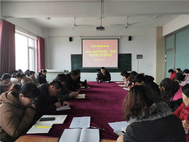 会议开始,院长于维同首先总结了2018-2019学年第一学期工作情况,肯定了我院取得成绩的同时,也明确了存在的不足。在此基础上,对2018-2019学年第二学期新学期工作从以下四个方面进行了部署。第一,教学工作,要求全体教师要做好课前准备,上好第一堂课,积极做好期初教学检查工作;第二,请假流程,会议向全体教师明确了请假制度,要求教师要严格按照流程执行;第三,2019年学院初步工作重点。会议指出,教学上全面提升人才培养能力,着力课程建设;科研上积极申报国家、省部级项目,发表高质量论文,提升社会影响;学生工作上,要让学生明确“为谁学、学什么、怎么学”,树立学生正确的价值观和学习观。任课教师应该积极带领学生参加各种科级竞赛,培养学生的各种能力,使我院各项工作更上一层楼。