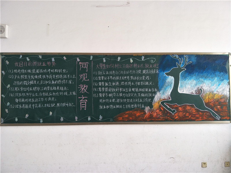 “两观教育”主题板报评选活动的开展,促进了“两观教育”观念深入人心,培养了学生正确的就业观和价值观,是我院提升文化内涵的重要环节,也是我校就业教育的重要部分。