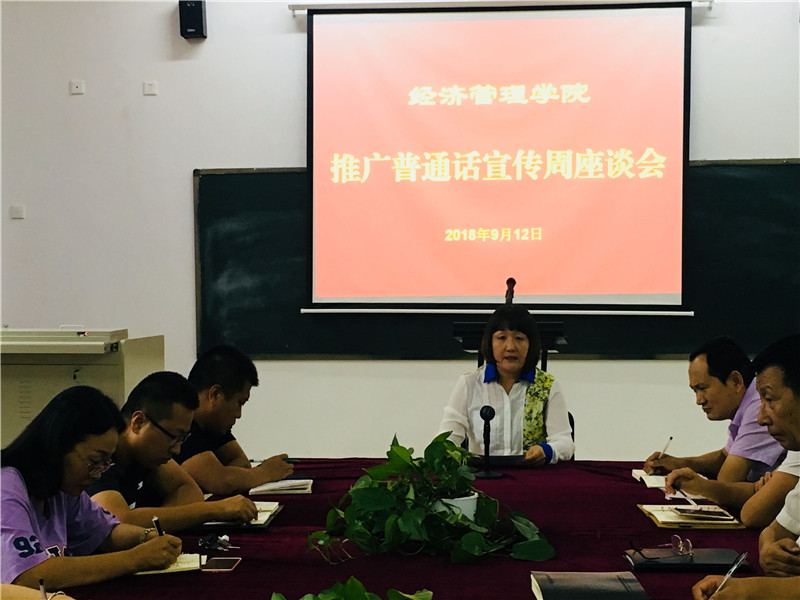 根据省语委《山东省教育厅等部门转发教育部等九部门关于开展第21届全国推广普通话宣传周活动的通知的通知》(鲁教语字〔2018〕2号)文件精神,以及《yl7703永利集团第21届全国推广普通话宣传周活动方案》的安排,我院积极举行yl7703永利集团第21届全国推广普通话系列活动,9月12日,我院组织科级以上管理人员推广普通话座谈会,院长于维同主持了会议,王桂荣老师进行了学好普通话经验交流,全体参会人员进行了热烈讨论。