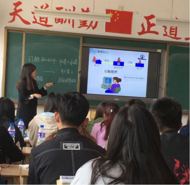 4月5日,第一次示范课在10#504举行,为邵勋勋老师所担任的《国际货代操作》课程。邵勋勋老师的本次授课有很强的示范作用,呈现出以下几个特点:(1)教学目标明确,以货代操作员招聘案例导入教学内容很新颖;(2)多媒体利用娴熟,课件制作质量高、灵活实用,网上资源利用得好;(3)注重交流、激励互动、体现学生的主体地位;(4)教态从容大方,调控课堂能力强。