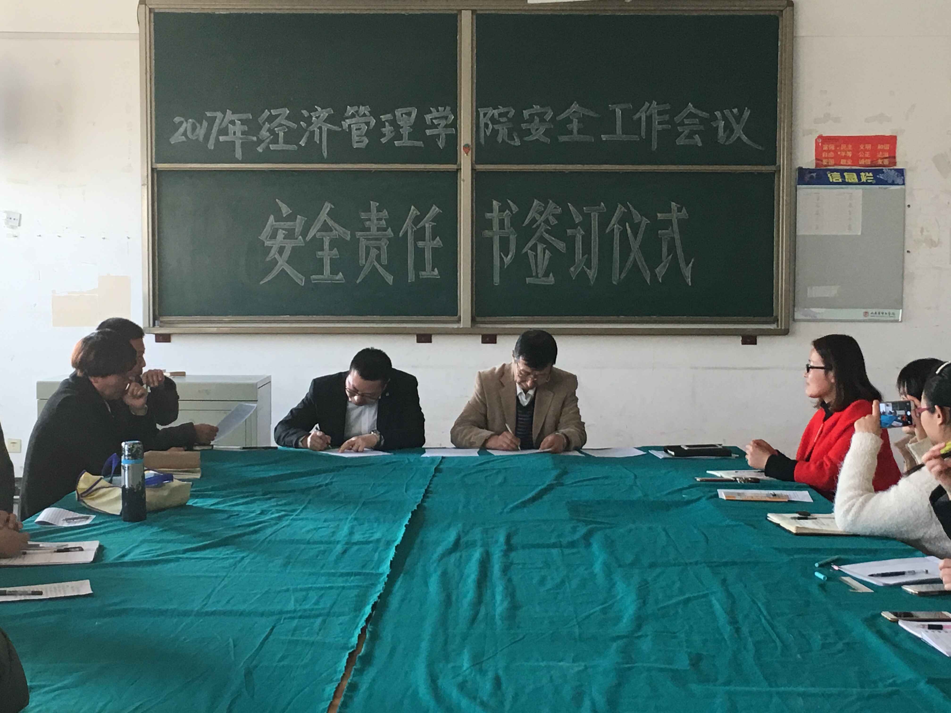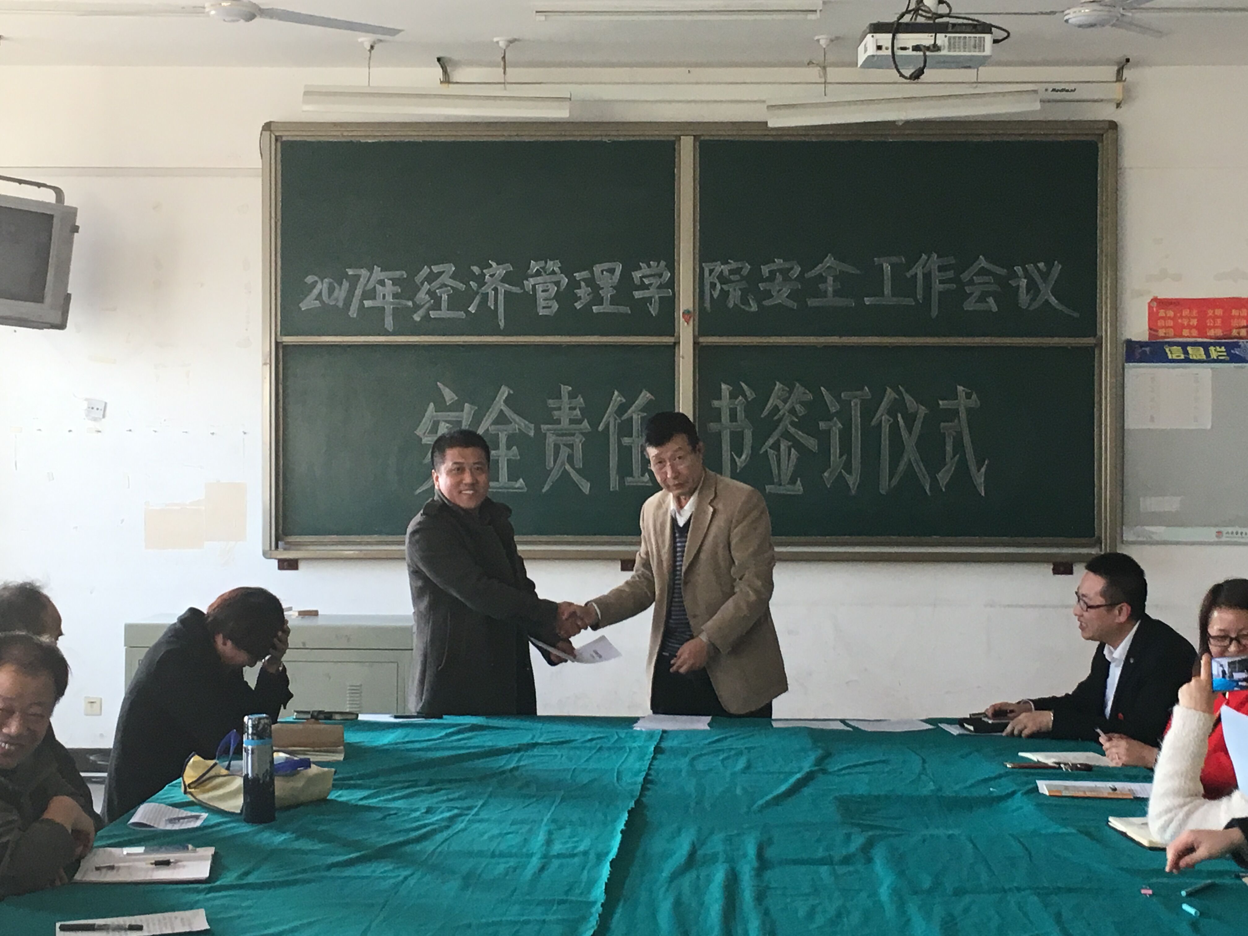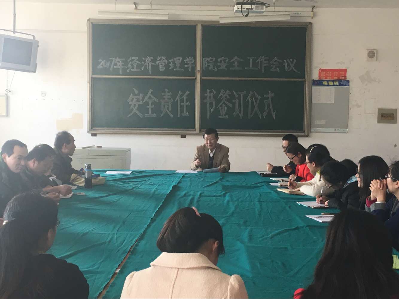 经管院长于维同教授向全院教职工介绍了《2017年yl7703永利集团安全目标责任书》主要内容,他指出,2016年,在学校领导的正确领导下,在全院师生的共同努力下,我院未发生任何安全责任事故,有效维护了广大师生生命财产安全和学院的正常秩序,为学院的健康发展提供了有力保障。他要求全院教职工要认真学习贯彻习近平总书记在全国高校思想政治工作会议上提出的“要坚持不懈推进高校和谐稳定,培育理性平和的健康心态,加大人文关怀和心理疏导,把高校建设成安定团结的模范之地”的总要求,学习校领导在学校《2017年安全工作会议》上的讲话精神,进一步提高思想认识,落实工作责任,深入开展安全隐患排查整治,不断强化学社的安全教育管理,进一步完善校、院、班三级心理健康教育体系,努力营造和谐稳定的良好校园环境,为平安校园和和谐校园建设作出应有的贡献。