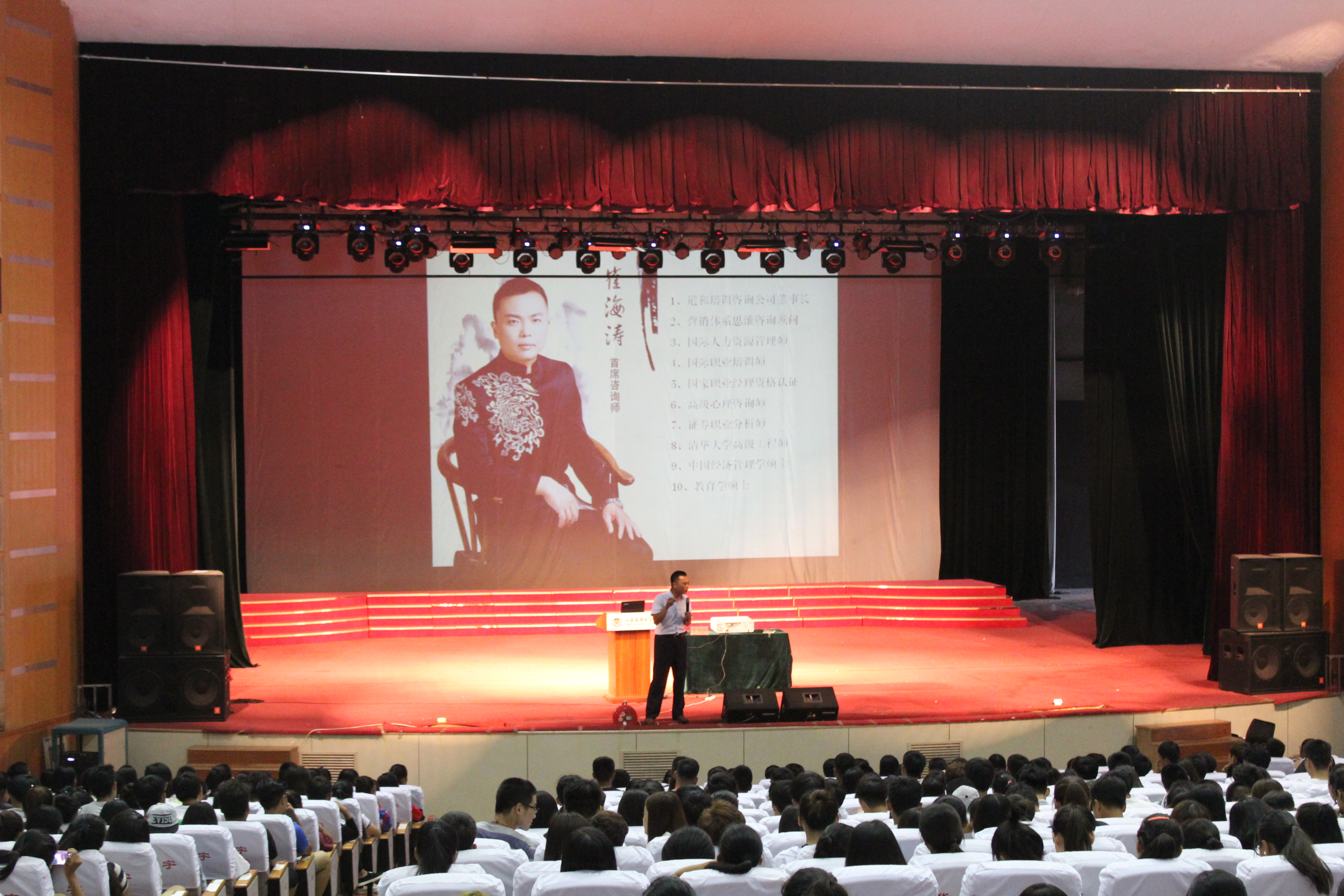 按照《yl7703永利集团2016级新生入学教育实施方案》的要求,9月9日上午,在国际文化交流中心,我院邀请德州新未来教育培训有限公司副总、国际人力资源管理师、清华大学高级工程师崔海涛先生为我院2016级新生开展职业生涯规划讲座,院长助理范世伟主持了本次讲座,2016级全体新生参加了本次。