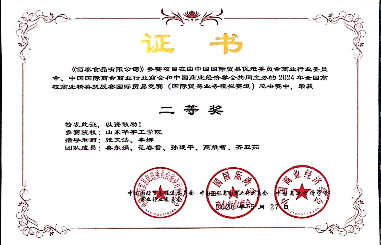 5月23日-27日,2024年全国高校商业精英挑战赛国际贸易竞赛•国际贸易业务模拟赛道总决赛在浙江省宁波市国际会展中心举行,来自全国26个省、自治区和直辖市的181所高等院校389支参赛队超过3300名参赛选手和辅导教师现场参加了全国总决赛,我院代表队荣获全国二等奖1项、三等奖1项。