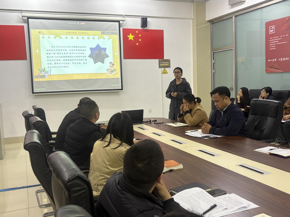 会上,辅导员代表刘庆连、汪莹欣就近期发生的学生突发晕厥、遭遇网络诈骗两个典型案例,从事件发现、预案启动、校家联动、情绪安抚、跟踪预防五个方面分别进行了复盘。学生管理科科长就学校《学生突发事件应急处置预案》《安全管理值班制度》等文件进行宣贯学习,明晰了部门职责,细化了流程规范,推动形成信息畅通、响应迅速、处置有力的工作闭环,提升协同响应能力。