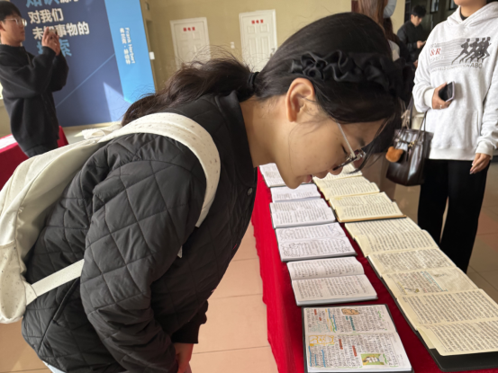 活动现场,铺展在红色桌布上的笔记成为焦点:有的将《管理学原理》《微观经济学》等专业课程知识点梳理成思维导图,逻辑框架清晰明了;有的结合《活着》《高效能人士的七个习惯》等读物撰写批注,图文并茂、感悟真切;还有的标注了重点内容的延伸案例,细节里藏着主动学习的巧思。参与学生俯身认真翻阅,不时与身边同学交流笔记中的整理技巧,或是拍照记录实用的知识点梳理方式,现场氛围既专注又热烈。